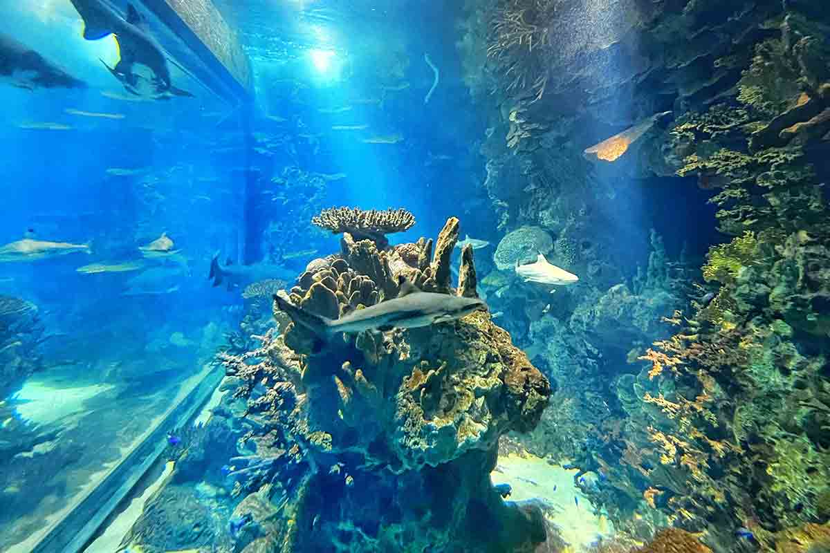 Один из крупнейших аквариумов Европы, разделённый на 16 тематических зон.